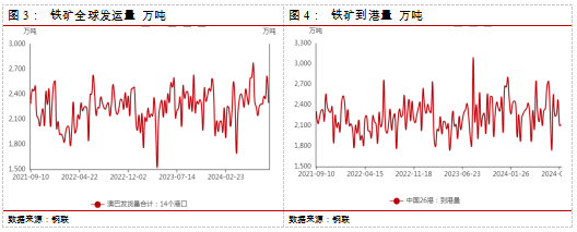 供应端,根据Mysteel全球铁矿石发运量数据显示, 9月2日-9月8日澳洲巴西铁矿发运总量2583.5万吨,环比减少311.6万吨。其中澳洲发运量1812.5万吨,环比减少23.6万吨。巴西发运量771.0万吨,环比减少288.0万吨。全球铁矿石发运累计同比增量3365万吨,其中巴西累计同比增量为1308万吨,非主流累计同比增量为2407万吨,澳洲累计同比减少350万吨。结合季节性规律及卫星监测预计,下期全球铁矿石发运量环比继续回升。根据Mysteel,本期45港铁矿石到港总量2217.4万吨,环比增加8.2万吨。根据船期预测,预计下期到港量持续维持在2200万吨附近。