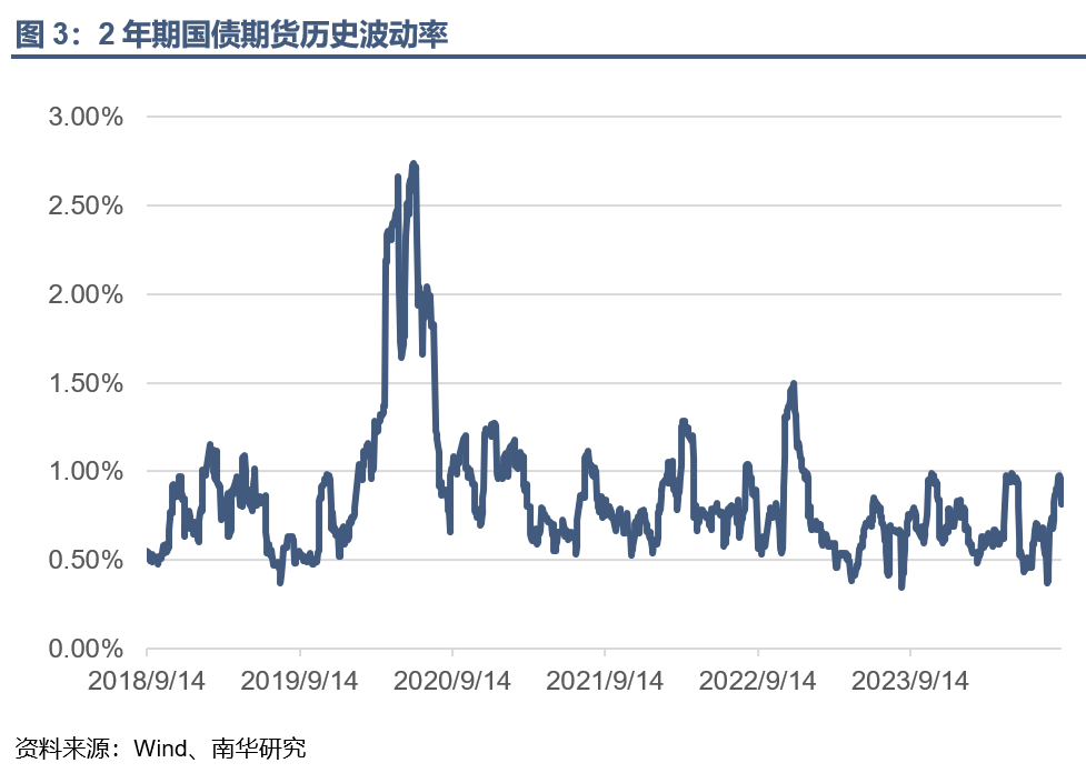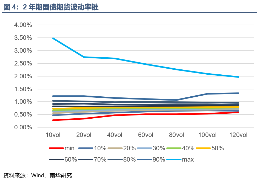 两年期国债20日历史波动率是0.81%,位于历史60%—70%分位值之间,略高于历史均值。