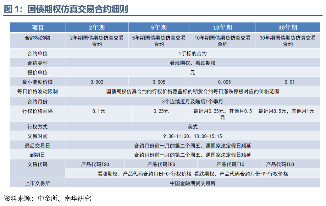 1)期权合约标的为相应国债期货仿真交易合约,1手国债期权仿真合约对应1手国债期货合约。