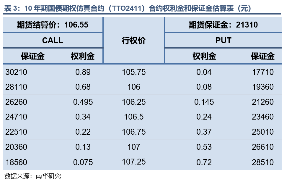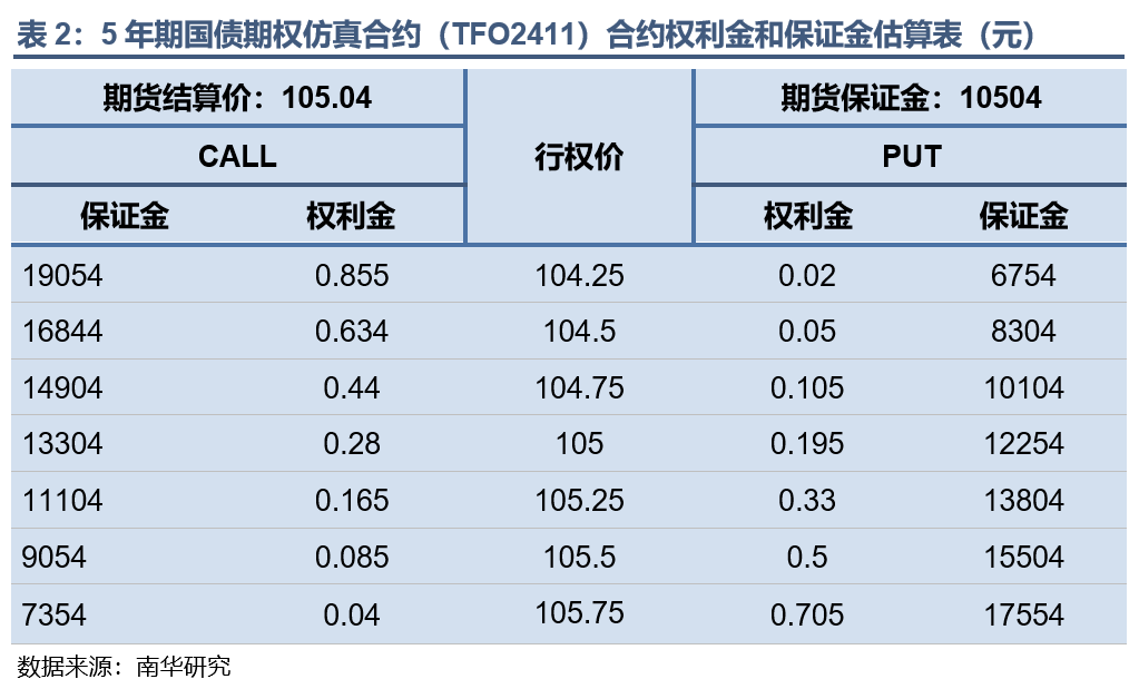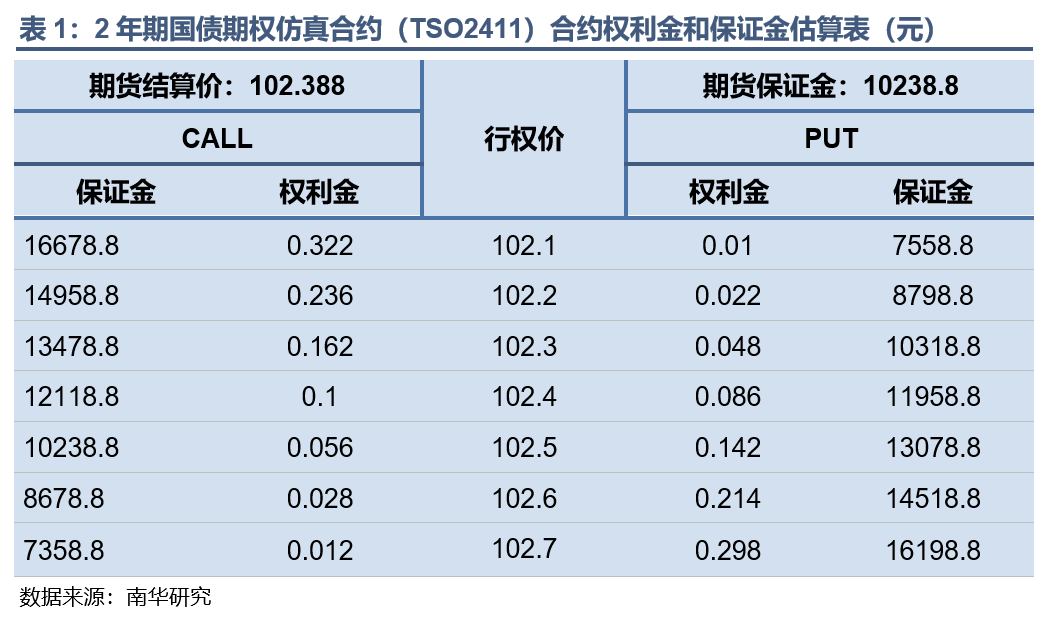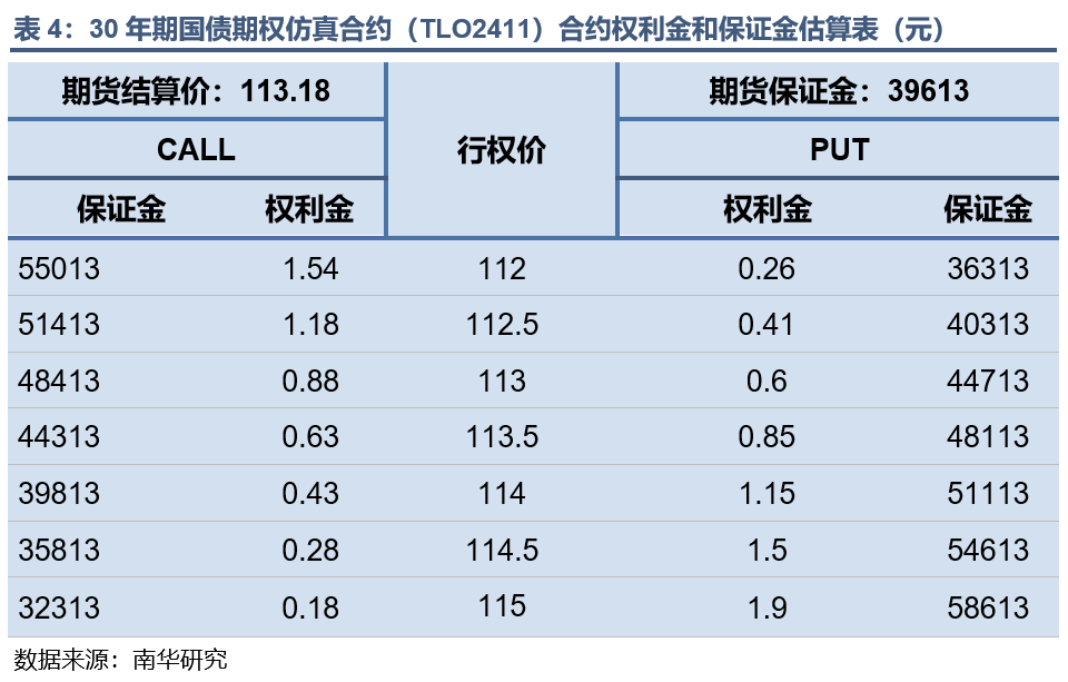 本文基于二叉树模型,利用9月10日二年期国债期货TS2412、五年期国债期货TF2412、十年期国债期货T2412、三十年期国债期货TL2412的收盘价,标的期货20日历史波动率以及一年期贷款市场报价利率(LPR)估算出TSO2411、TFO2411、TTO2411以及TLO2411平值附近期权的权利金和保证金,供投资者参考。