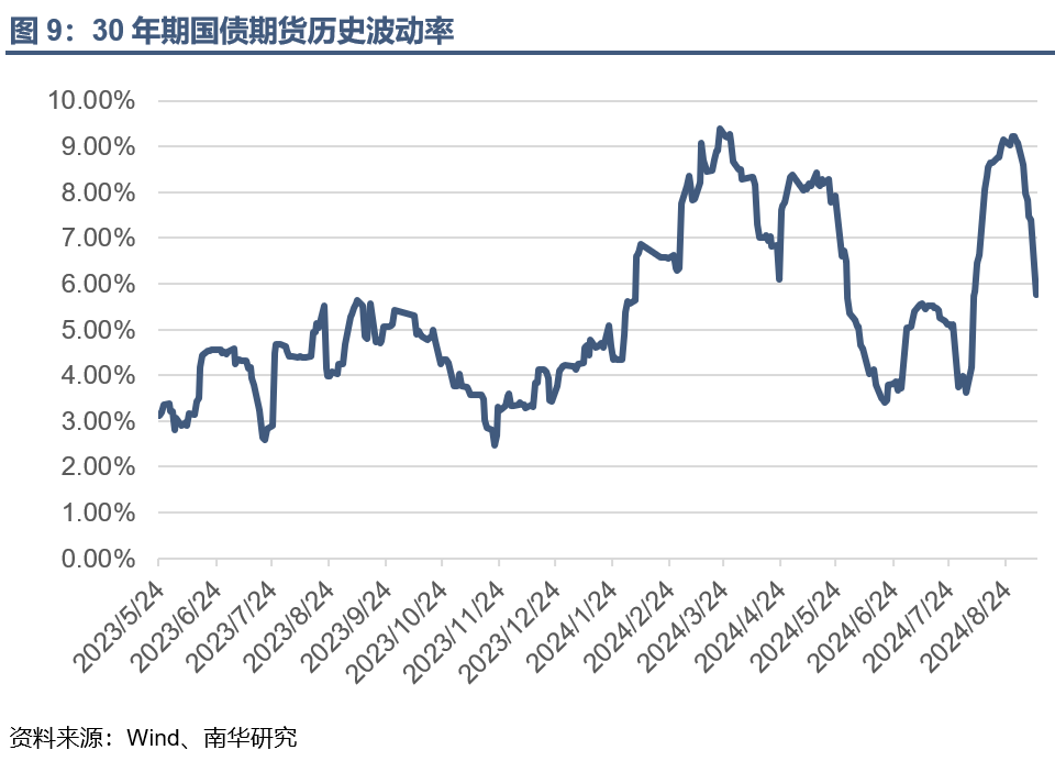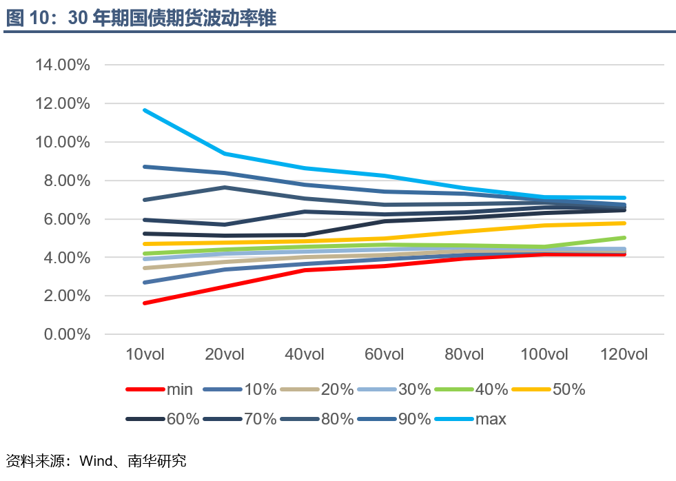 三十年期国债期货20日历史波动率是5.76%,位于历史70%——80%分位值之间,处于历史偏高水平。