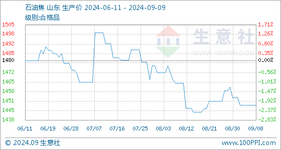 9月9日,生意社石油焦基准价为1449.00元/吨,与本月初(1454.00元/吨)相比,下降了-0.34%。