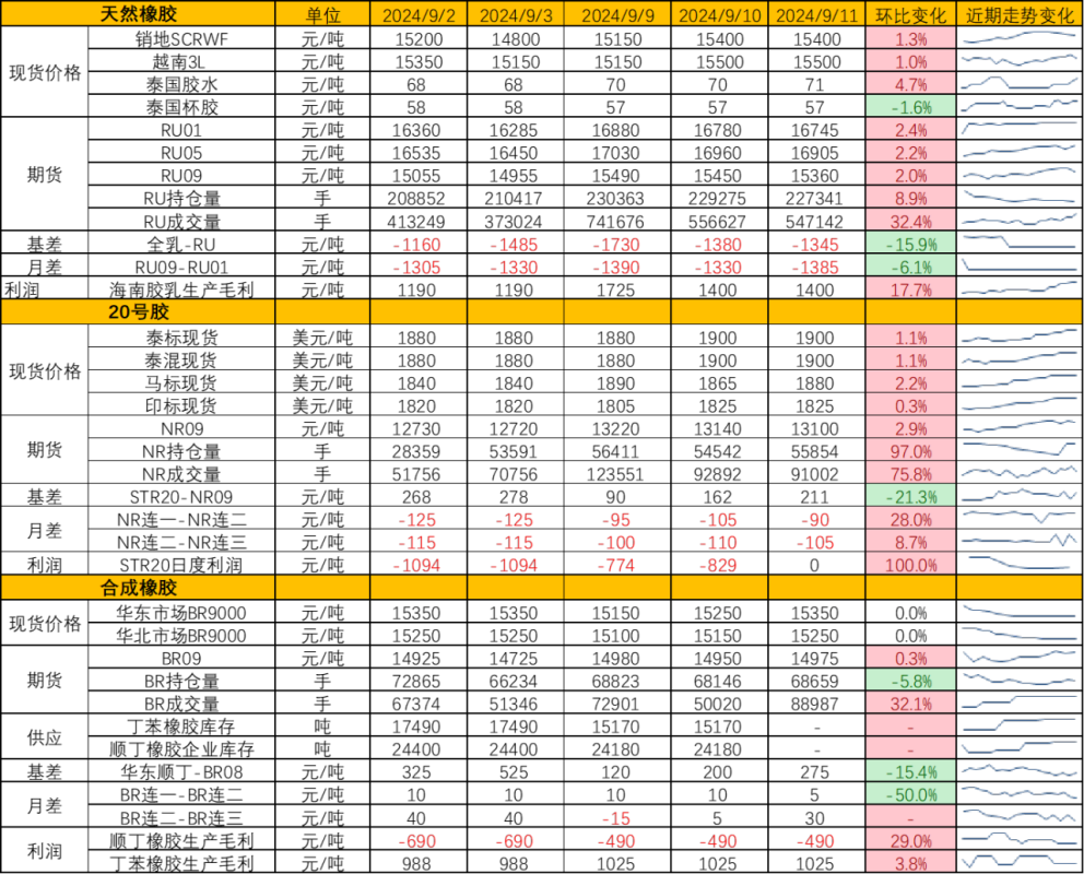 逻辑:橡胶近期在商品反弹中表现反而偏弱,上涨未有持仓增加的配合,向上突破仍有一定阻力。上期所发布了中秋橡胶提保通知,建议轻仓过节,防止假期中出现突发事件。截至2024年9月8日,青岛天然橡胶样本一般贸易库存较上期(20240901)减少1.08万吨至38.33万吨,降幅2.74%。青岛天然橡胶样本保税库存较上期(20240901)减少0.21万吨至5.89万吨,降幅3.43%。7月以来,青岛库存变化较为平稳,上一周期去库速度加快,去库节奏的转变也促使橡胶尾盘增仓上涨。
