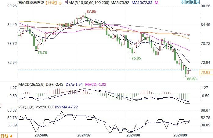 北京时间9月12日10:42布伦特原油连续报70.83美元/桶