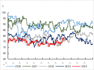 整体来看,8月份下游需求有小幅的上行,虽然整体需求相较于往年仍然呈现偏弱的状态,但环比在改善。尽管目前企业接到的新订单数量有限,但预计在9月份,农膜行业将进入一个持续数月的生产高峰期,这将导致行业开工率显著提高。同时,低压管材的需求也将开始增长,预计PE下游行业将迎来季节性的好转,从而带动工厂对原料的刚性采购需求增加。PP下游相对更弱,下游利润情况比较差,不过旺季下仍有恢复的预期,整体偏乐观。