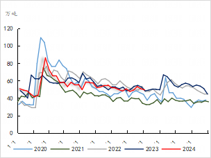 8月份国际油价开始走弱,聚烯烃价格同样走势偏弱,然原料端跌幅相对更大,油制利润走强。上游企业压力得以缓解,国际油价跌破震荡区间,预计后续油制利润或继续维持修复为主。煤制利润小幅走高,整体变化不大,仍是目前利润相对最好的制成路径。本月PDH利润持续走低,目前PDH利润已经处于偏低水平,月内部分PDH企业开始检修,随并不是因利润原因进行检修,但若是利润持续受到挤压,后续开工可能会受到利润较大的影响。