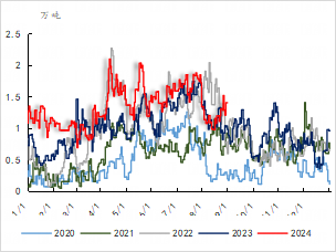 9月份预计在十一前仍维持小幅去库的节奏,十一假期前下游有备货需求,基本面格局表现为供需双增,因此即使是去库幅度预计不会太大,由于需求端弱于往年预计上游库存会在中高位运行。