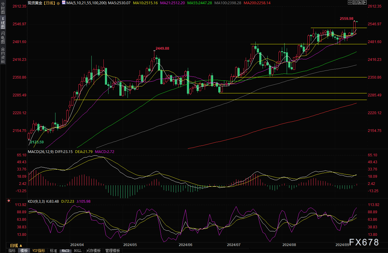 黄金交易提醒:美联储降息前景增加黄金吸引力,金价逼近2560再创历史新高