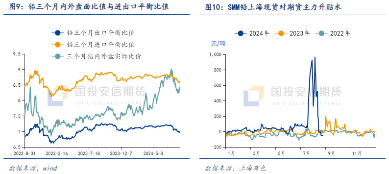 8月在进口粗铅和铅锭流入国内市场,废电瓶价格跟随铅价大幅回调,铅基本面明显走弱,多头踩踏,沪铅下跌寻底,铅现货进口窗口从打开重回关闭状态。9月铅基本面方向性不足,1)低库存下的软挤仓风险有待解除:8月沪铅交割过后,下游电池企业大量仓单提货,交易所铅仓单库存从5.77万吨快速回落至0.5万吨,SMM铅社库低至1.58万吨,9月河南、湖南、内蒙等地部分原生炼厂进入检修,短期铅累库预期并不强,软挤仓风险未解除。2)精废价差能否有效扩大:783号文件增加了再生铅炼厂成本,在终端消费疲弱的情况下,废电瓶价格持续调降,再生利润好转,但废电瓶供不应求的格局并未根本改变,9月仍有再生铅大厂减产、检修。下游前期大量仓单提货,叠加部分进口货源低价甩货,国产再生精铅销售压力大,精废价差200元/吨高位,供需双弱格局下,需等待精废价差有效收窄作为底部信号。