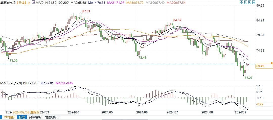 北京时间9月13日13:43,WTI原油价格报69.48美元/桶
