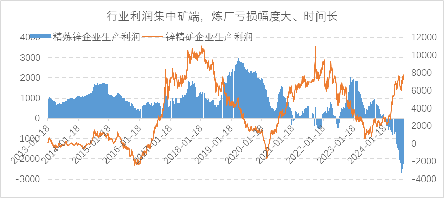 4:从时间节奏上,矿山利润基本根据4年左右的库存周期波动,结合基本面情况判断,2024Q4-2025Q1将成为矿由紧向松的过渡阶段,锌精矿TC的明显回升大概率要到年底甚至2025年Q1才会看到。