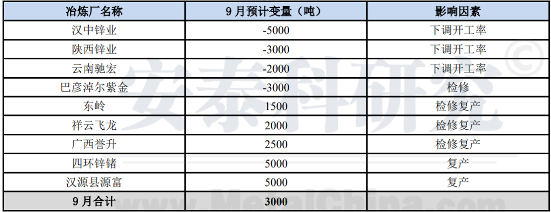 中国锌原料联合谈判(协调)小组(CZSPT)季度会议8月21日在内蒙古巴彦淖尔召开,14家与会企业就适时调整现有生产线检修计划、加大二次物料使用及推迟新建产能达产时间等方面达成一致,生产计划调整后,与年初预期相比,全年预计将累计减少锌矿需求近百万吨金属量。