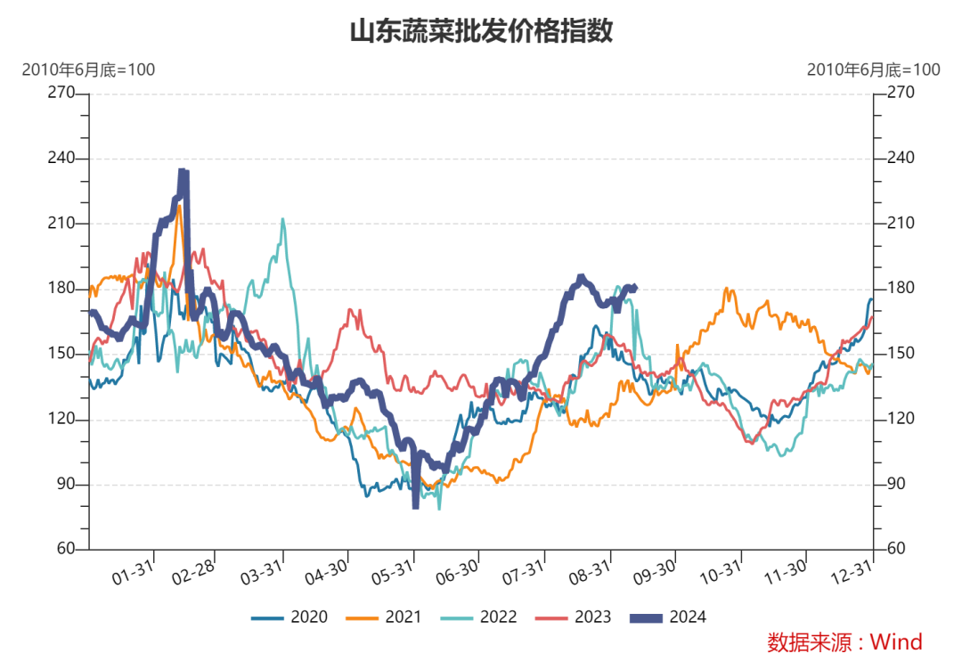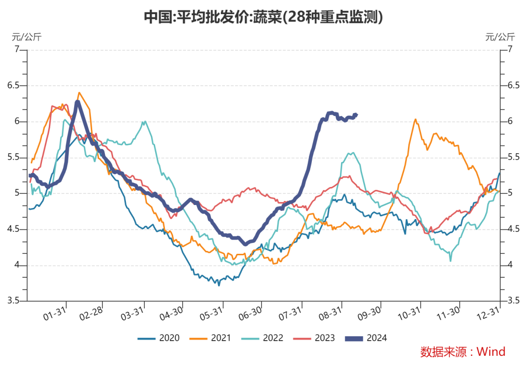 今年鸡蛋现货价格的季节性反弹,除了受自身基本面支撑主要是来自需求旺季的支撑以外,也受到了蔬菜价格的影响。蔬菜价格在8月份大幅上涨,目前价格仍然处在高位波动。后期要关注蔬菜价格何时开始趋势性回落以及回落幅度。