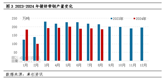 产量:8月镀锌带钢产量下降环比降幅2.07%