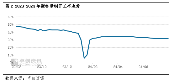 开工:8月镀锌带钢平均开工31.62%环比下降0.68个百分点