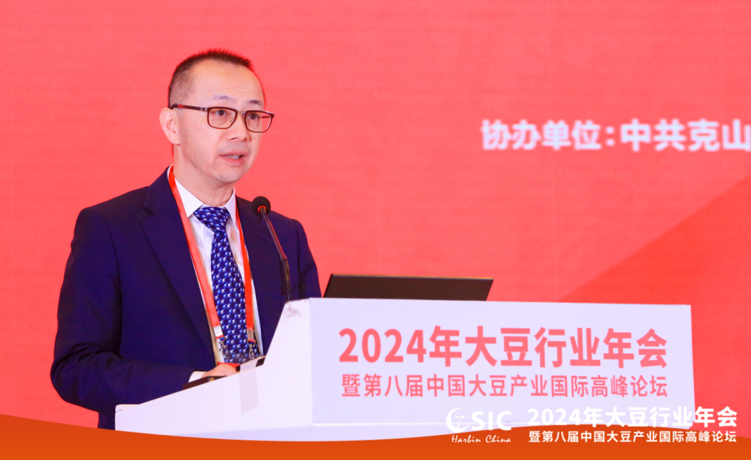 中国大豆产业协会会长、北大荒农垦集团有限公司总经理杨宝龙会长深情回顾了中国大豆产业20年的风雨兼程,并热烈欢迎与会嘉宾。杨会长强调了大豆产业在中国农业发展中的重要性,肯定了近年来大豆自给率的提升及市场话语权的增强。面对未来,提出需突破单产、创新加工、升级营销、保障资本四大领域,以强化产业韧性。赞扬了企业的坚韧不拔,并鼓励大豆人艰辛、坚持、坚守,相信大豆产业的美好未来。同时,强调期货和资本市场工具的重要性,认为只有掌握风险管理工具,大豆产业才能基业长青。最后,他号召全行业携手并进,为粮食安全和人民美好生活贡献力量,共同谱写大豆产业的辉煌篇章。