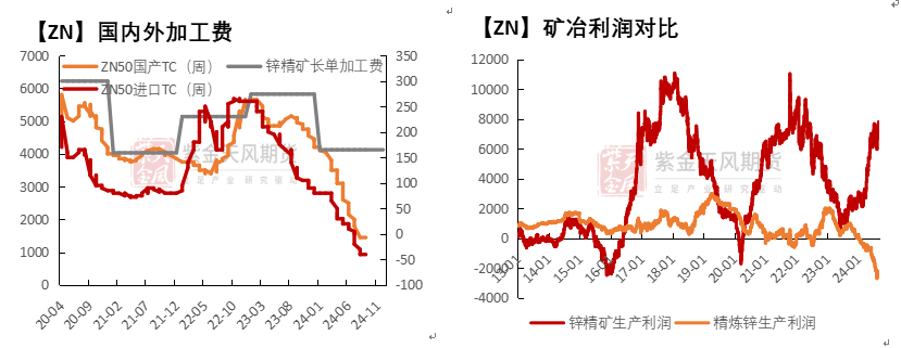 在原料供应短缺、炼厂产能释放和库存补充不足的背景下,锌精矿TC出现巨幅下行,跌至历史低位。超低加工费导致炼厂被迫持续减产