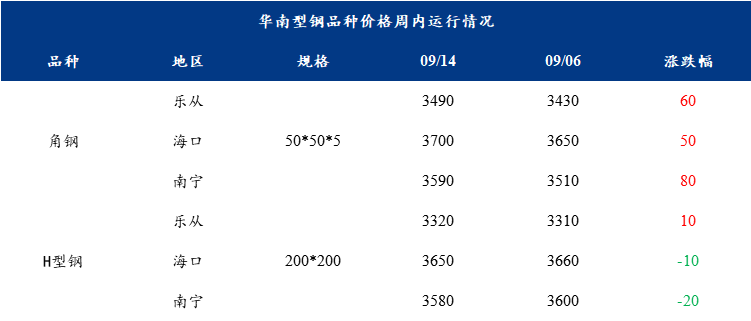 表1:华南型钢品种价格汇总(单位:元/吨)