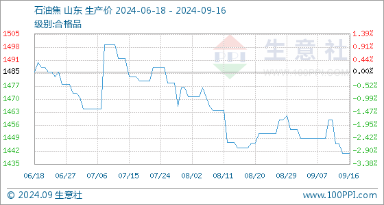 9月16日,生意社石油焦基准价为1441.00元/吨,与本月初(1454.00元/吨)相比,下降了-0.89%。