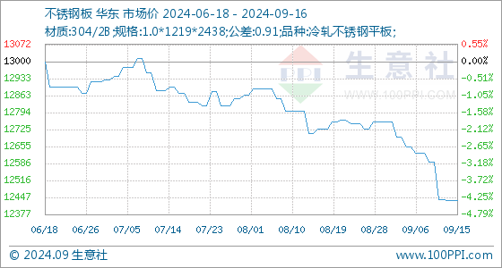 9月16日生意社不锈钢板基准价为12435.71元/吨