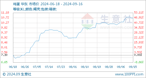 9月16日生意社鸡蛋基准价为10.72元/公斤