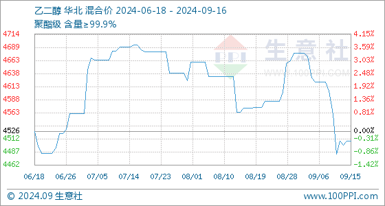 9月16日生意社乙二醇基准价为4508.33元/吨
