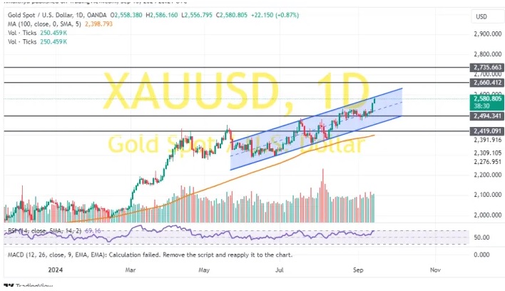 周一(9月16日)亚市早盘,现货黄金在上周五大涨后维持坚挺走势,金价目前位于2581美元/盎司上方。知名财经网站FXDailyReport分析师Nicholas Kitonyi撰文,对黄金后市走势进行分析。