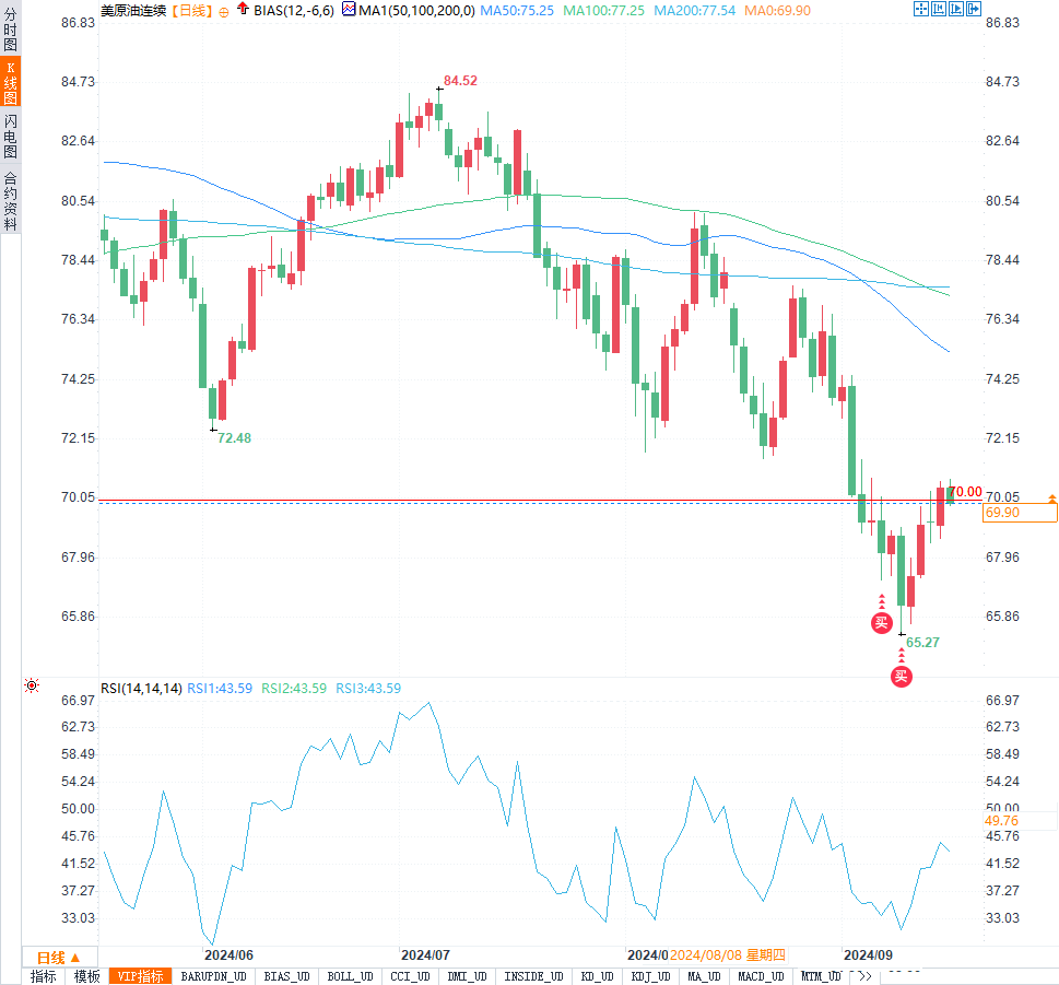 技术面分析:WTI跌破70美元,短期支撑位下移