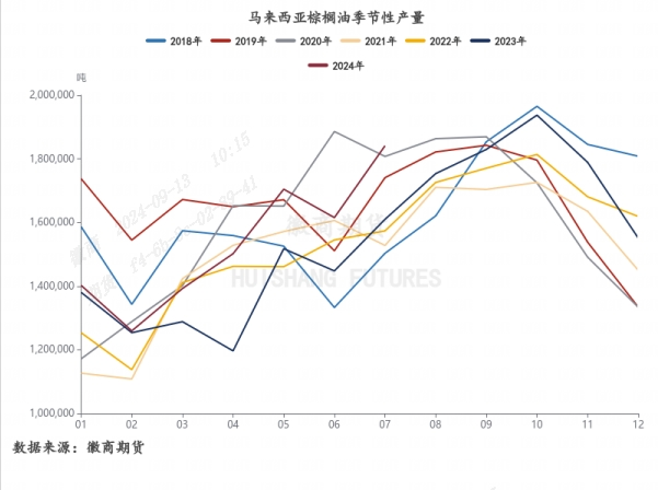 3.马来西亚棕榈油8月份复产不及预期,低于同期8%的增幅,预计8月马棕累库幅度放缓。