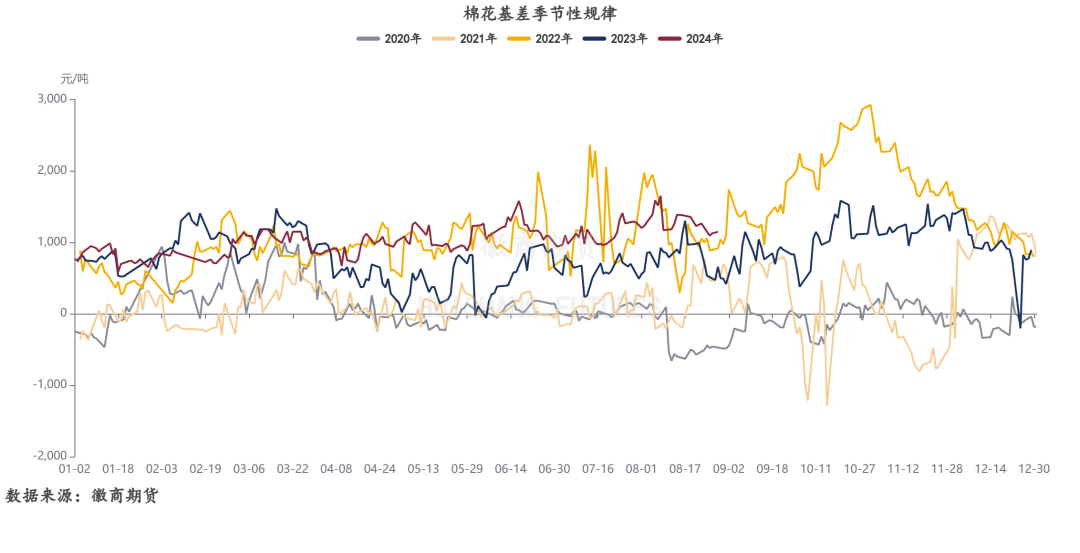 内外价差方面,8月27日,国内棉花现货价格指数CCI3128报14982元/吨;FC IndexM报80.47美分/磅,折1%关税下价格14129元/吨,折滑准税下14708元/吨,内外价差有所抬升。基差方面,郑棉期货价格与CCI3128B指数价差为-1232/吨(7月30日为-1279元/吨),基差环比有所缩窄。
