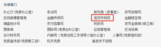 目前,央行官网机构设置下的内设部门已新增“信贷市场司”,相关简介显示,信贷市场司的职能是“牵头拟定并组织实施科技金融、绿色金融、普惠金融、养老金融、数字金融、消费金融、区域金融等金融政策,完善信贷政策评估机制,规范信贷市场运行。落实国务院及相关部际联席会议部署,承担国家重大战略金融服务政策和协调工作。”