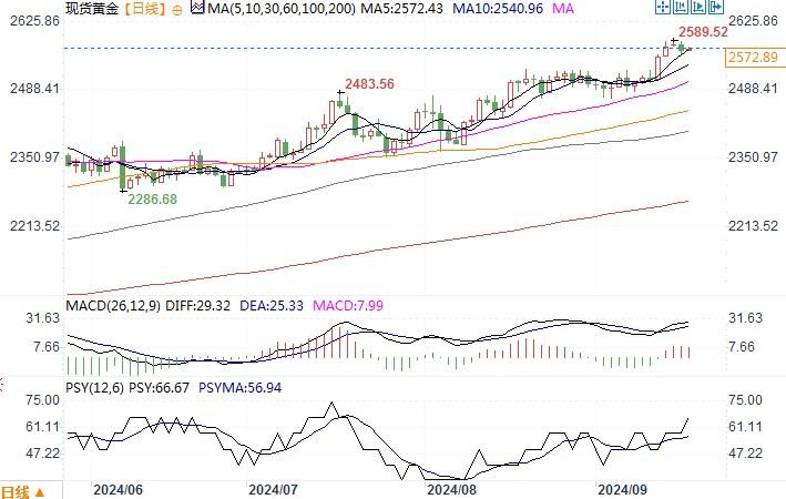 北京时间9月18日10:40现货黄金报2572.89美元/盎司