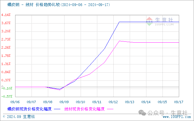 据生意社价格监测,近期江浙沪地区螺纹钢、线材价格均小幅震荡上行。截止9月17日,江浙沪地区HRB400螺纹钢均价3262.57元/吨,较6日价格上涨近4%;HPB300高线均价3484.5元/吨,较6日价格上涨3%左右。