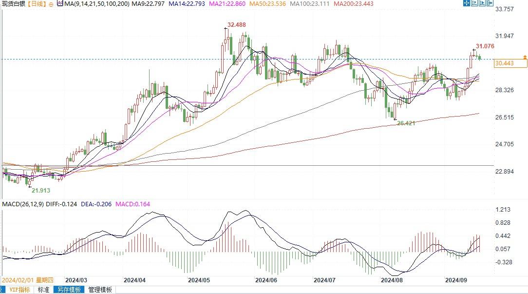 北京时间9月18日14:30,现货白银报30.44美元/盎司