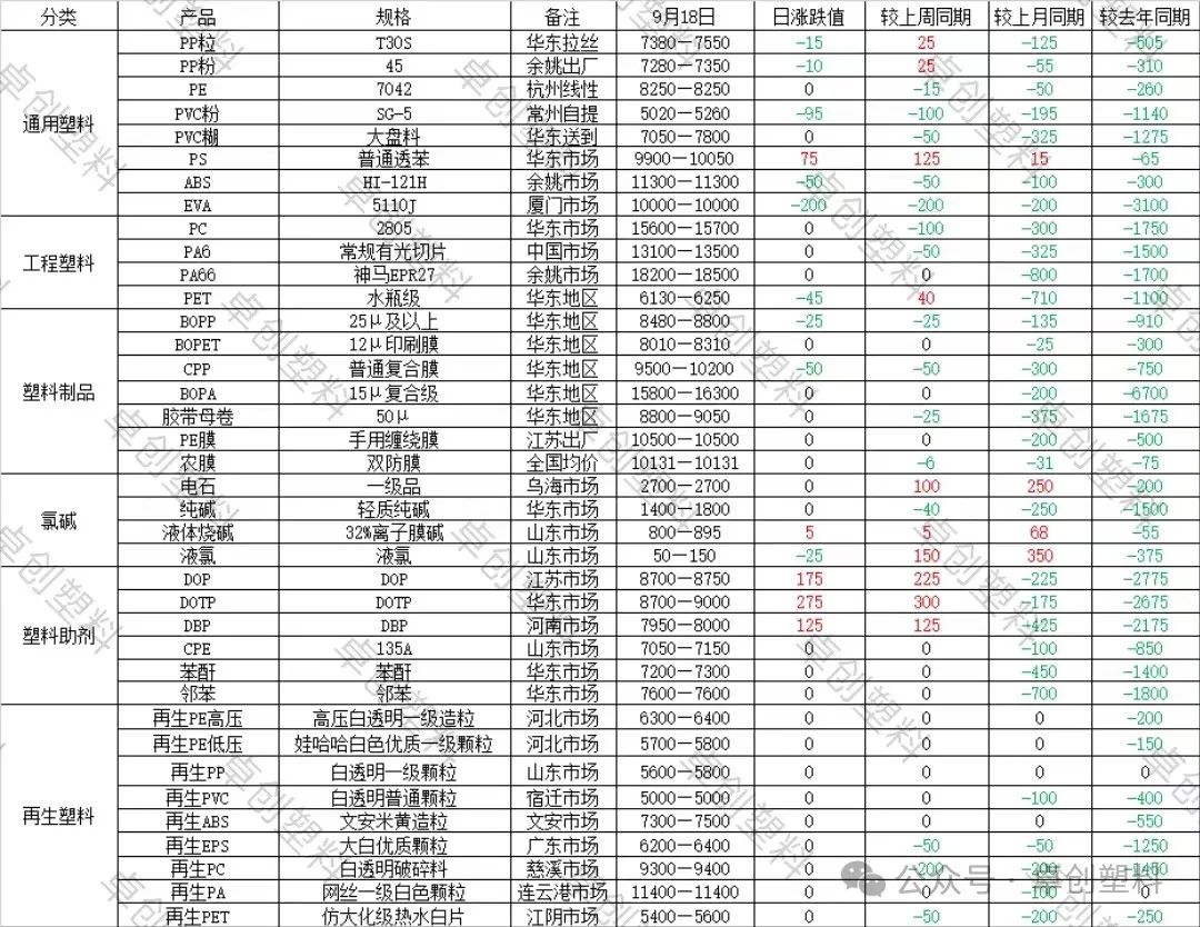 塑料:今日行情汇总及明日展望