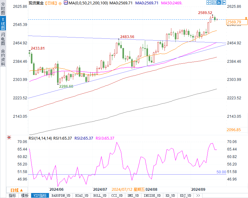 但若美联储如市场预期般鸽派,降息50个基点,并释放出未来更多降息的信号,美元将进一步走弱,推动金价再次冲高,甚至突破2600美元/盎司关口。