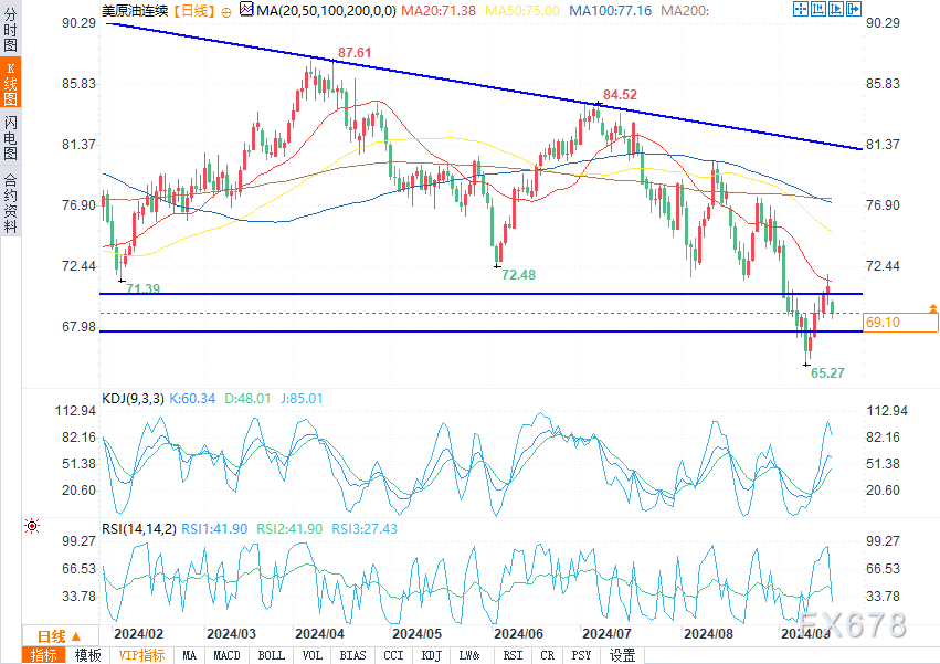 下行方面,67.65美元是一个本月多空争夺的重要水平,值得注意。如果跌破,下一个目标将是9月低点64.05美元。