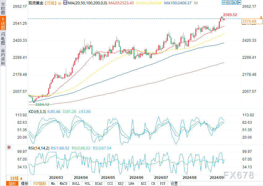 北京时间18:38,WTI原油报69.09美元每桶,跌幅1.24%。现货黄金报2578.58美元/盎司,涨幅0.24%。