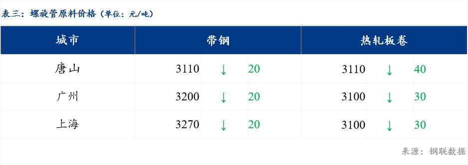 今日螺纹主力期货震荡下跌,主流市场带钢、热卷价格下行,螺旋管主流城市出厂价格部分城市下调,大多数市场螺旋管价格持稳。据反馈,中秋节前后螺旋管厂家订单情况较差,询单电话很少,下游市场需求表现低迷,再加上原料价格下跌,市场整体交投氛围不佳。综合来看,预计明日全国螺旋管价格弱稳运行。