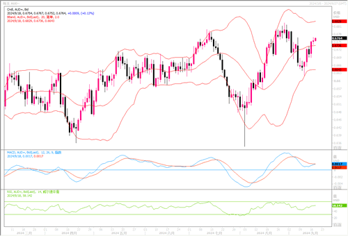 周二(9月17日),澳元兑美元保持小幅上涨,收盘报0.6759美元。美债收益率下跌为澳元提供支撑,因利率期货预估美联储周三降息50个基点的可能性上升至67%。而由于决策者的声音一直偏向鹰派,市场认为澳洲央行在下周会议调降 4.35% 隔夜拆款利率的前景渺茫。息差优势似乎暂时给到澳元一定的支撑。澳元本周的主要障碍将是周四公布的8月就业数据,分析师预测就业人数将温和增加2.55万人,失业率持稳于4.2%。如果就业数据显示劳动力市场稳定,那么将不会改变市场对于澳联储将在11月份之后降息的预期,澳元或许也能从中继续得到些支撑。此外,一旦本周美联储利率会议上开始降息,且在会议后如果主席鲍威尔对今后货币政策的走向发表鸽派的讲话,预料将会进一步刺激澳元/美元的走升。日线图上,澳元/美元仍保持在反弹的上行通道中。上方阻力位依次在0.6768、 0.6800; 支撑位则分别在0.6720-25和0.6695-0.6700区域。