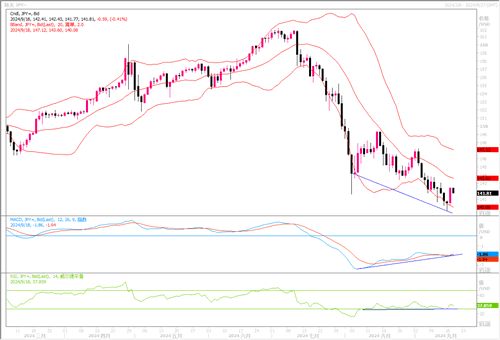 周二(9月17日),美元兑大多数主要货币上涨,此前公布的零售销售数据好于预期,似乎支持美联储采取不那么激进的降息立场。美元兑日元上涨0.87% 至141.83,在中国中秋假日期间,美元/日元一度最低触及139.56。周二美国统计局称,8月零售销售环比增长0.1%,7月读数上修为增长1.1%,前值为增加1.0%。接受路透调查的经济学家此前预计8月零售销售下降0.2%。亚特兰大联储将对第三季度国内生产总值(GDP)环比增长年率的预期从2.5%上调至3.0%(第二季度经济增速为3.0%)。再加上8月失业率下降,这暗示在第三季度的大部分时间里,美国经济依然根基稳固,促使金融市场减少对美联储周三降息50个基点的押注。美元因此得到了些支撑出现低位反弹。至于本周五的日本央行会议,市场预计日本央行将保持政策稳定,而一旦发出进一步加息的信号,这可能会让外界预期 10 月的下一次会议将有所行动。若出现这样的结果料能继续刺激日元的进一步回升。周四亚洲时间凌晨,若美联储仅仅降息25个基点,恐怕短线上会促进美元/日元出现空头回补的修正走势。日线图上的底背离痕迹较重,谨防美元/日元在空头回补的拉动下作进一步回升的风险。