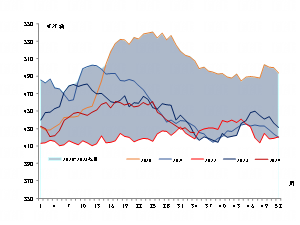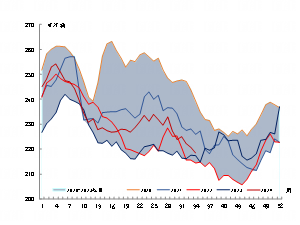 图2:近年美国商业原油库存走势(百万桶) | 图3:近年美国汽油库存走势(百万桶) |