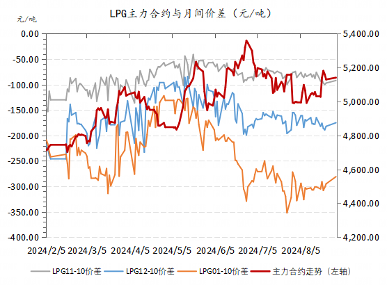 图1:液化气主力合约与月间价差走势(元/吨) |