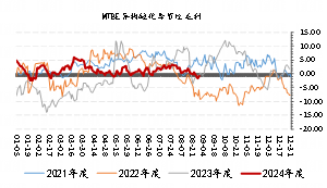 图10:MTBE气分装置毛利季节性(%) | 图11:MTBE异构醚化季节性毛利率(%) |