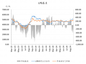 2024年8月,液化气期货价格在4970至5190元/吨间大幅波动。但民用气和醚后碳四的现货价格相较于7月份均有所上升。具体来看,民用气市场在8月初受到CP(合同价格)小幅上调的影响,进口气成本相应增加,市场普遍出现价格上涨的现象。然而,由于高温天气的抑制作用,终端需求表现疲软,加之部分地区供应量的增加,以及国际市场的震荡调整,未能为市场提供进一步的正面支撑。8月下旬,市场在“金九银十”的传统旺季预期下,市场情绪逐渐回暖,价格开始止跌回稳,部分地区甚至出现了价格上涨的迹象。
