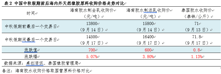 【行情解读】中秋假期间天然橡胶市场行情回顾