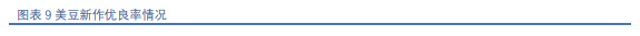 【作物进展周报:美国大豆优良率65%周环比下降2个百分点】美国农业部作物进展周报显示,截至8月25日美国大豆优良率65%,周环比下降2个百分点,去年同期53%。其中伊利诺伊州大豆优良率68%(上周64%),衣阿华州77%(上周77%),印第安纳州68%(上周71%)。美国大豆荚率94%,一周前89%,去年同期94%,五年均值93%;落叶率13%,一周前6%,去年同期13%,五年均值10%。