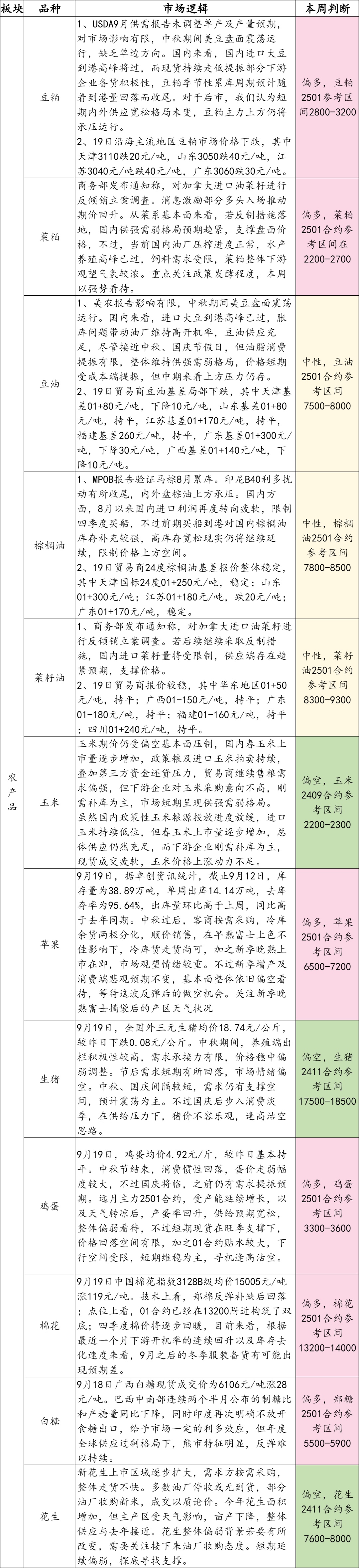【农产品】行情提示及操作建议2024/9/20
