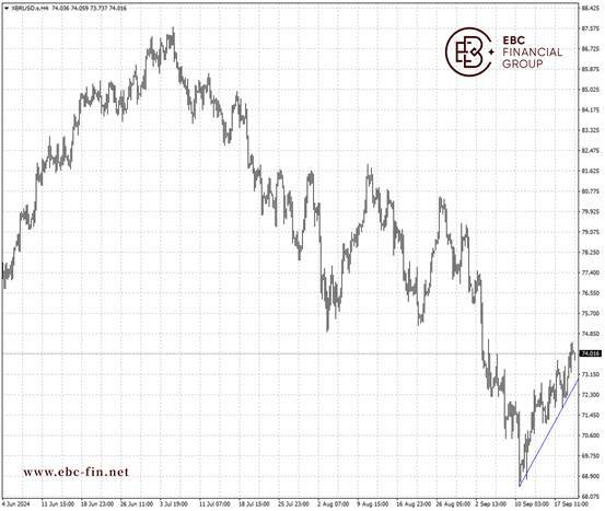 布伦特原油展现出稳健的上行路径,不过反弹可能会在支撑位转化的阻力位75美元附近结束。