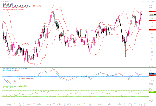 周四(9月19日),澳元兑美元上涨0.77%,收盘在0.6815 美元,盘中最高曾触及年内的高点0.6839。澳洲统计局周四公布的数据显示,8月净就业人口比7月份增加了4.75万人,远高于市场预测的增加2.5万人,8月失业率维持在4.2%,符合预期,就业参与率稳定在67.1%的历史高位。澳洲8月就业人口连续第三个月超过预期,招聘的持续强劲表明劳动力市场仍然紧张,这支持了澳洲央行近期无需降息的观点。息差优势继续推动澳元/美元大幅反弹。日线图上,隔夜一根大阳柱将澳元/美元汇价推向布林带通道上轨,技术指标转向上倾开始变得明显,显示澳元反弹力度在增强之中。若后续能突破隔夜年内高点0.6839,初步上攻目标将是去年12月份高点0.6871,更进一步则瞄向0.70。下方目前初步的支撑区域在0.6740-0.6770之间。